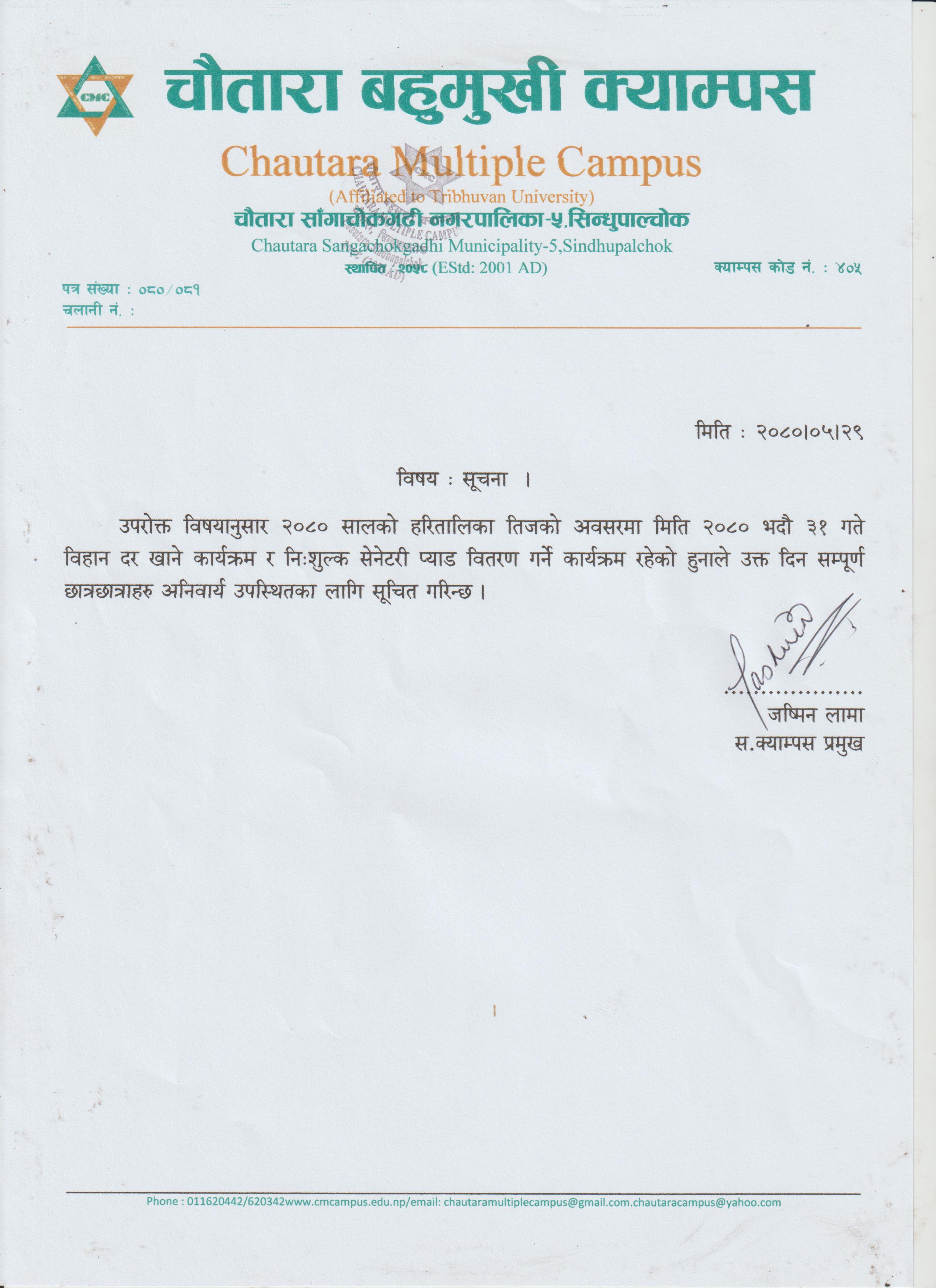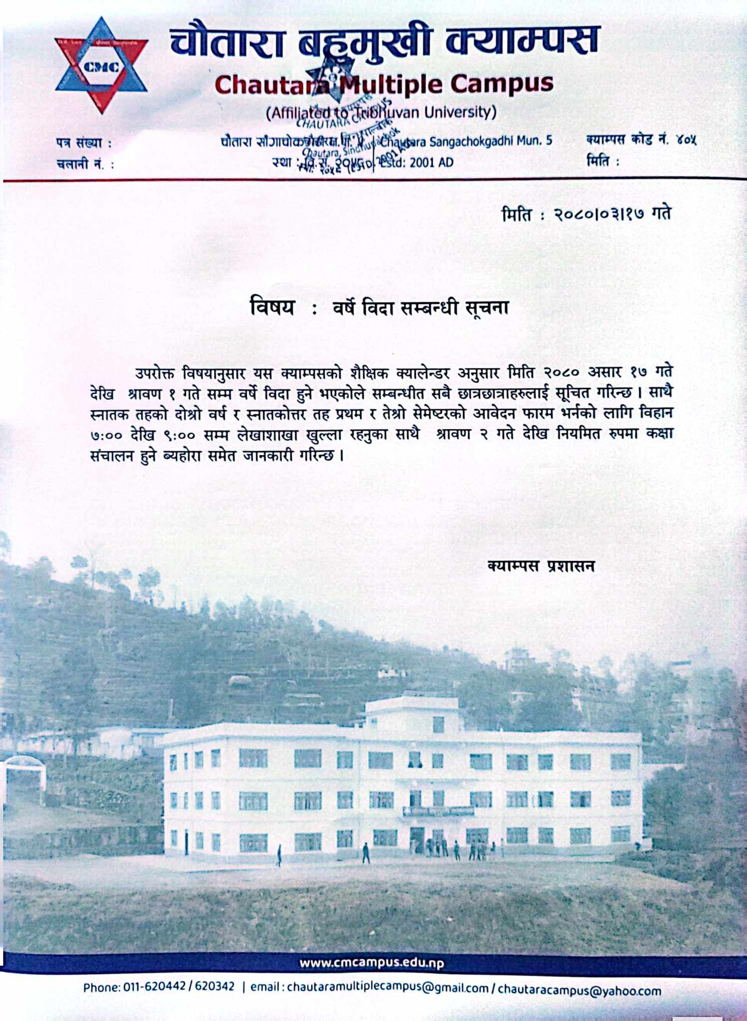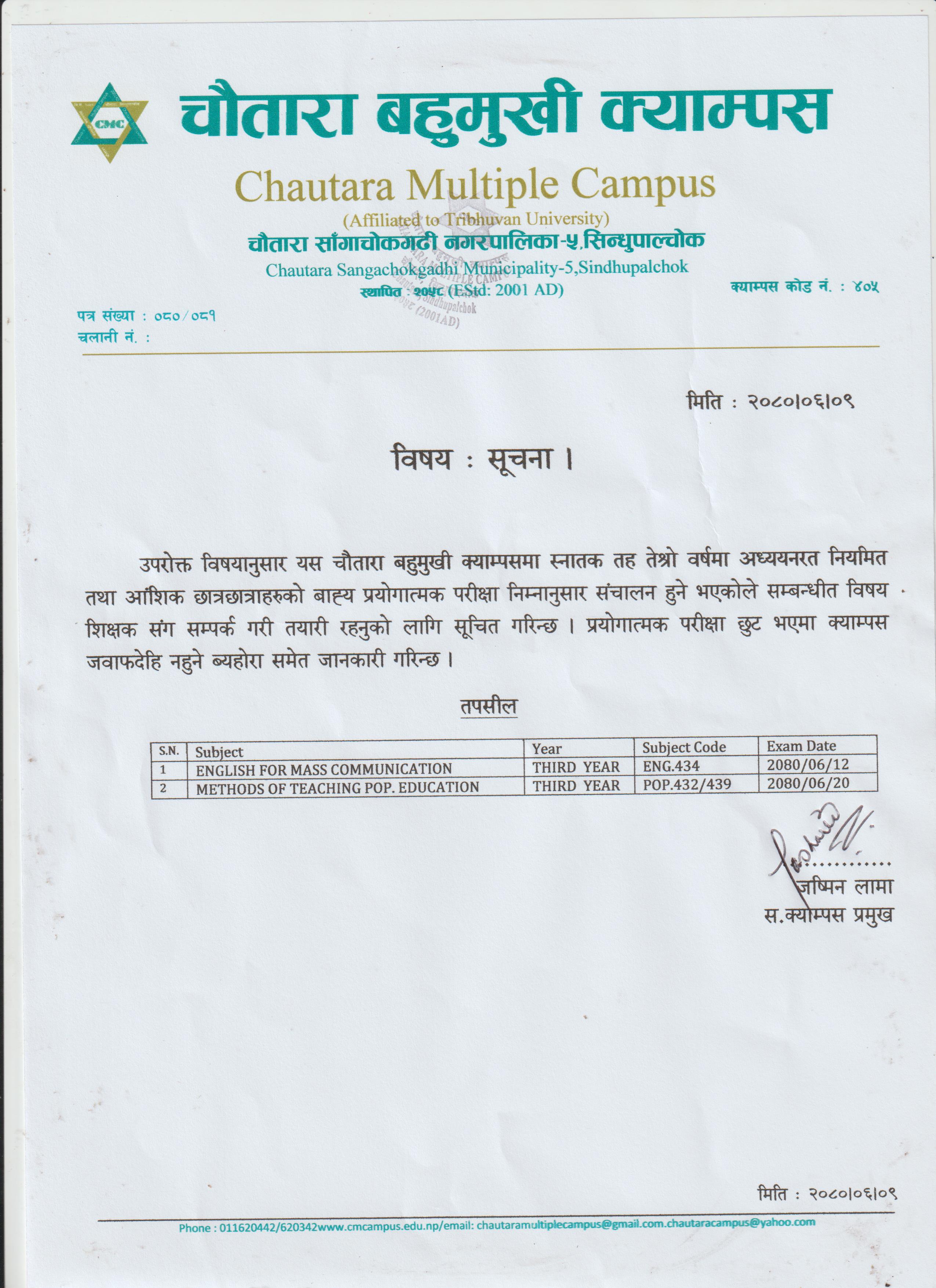 | स्नातक तह दोश्रो वर्षको परीक्षा आवेदन फारम भर्ने म्याद थप सम्बन्धमा । |