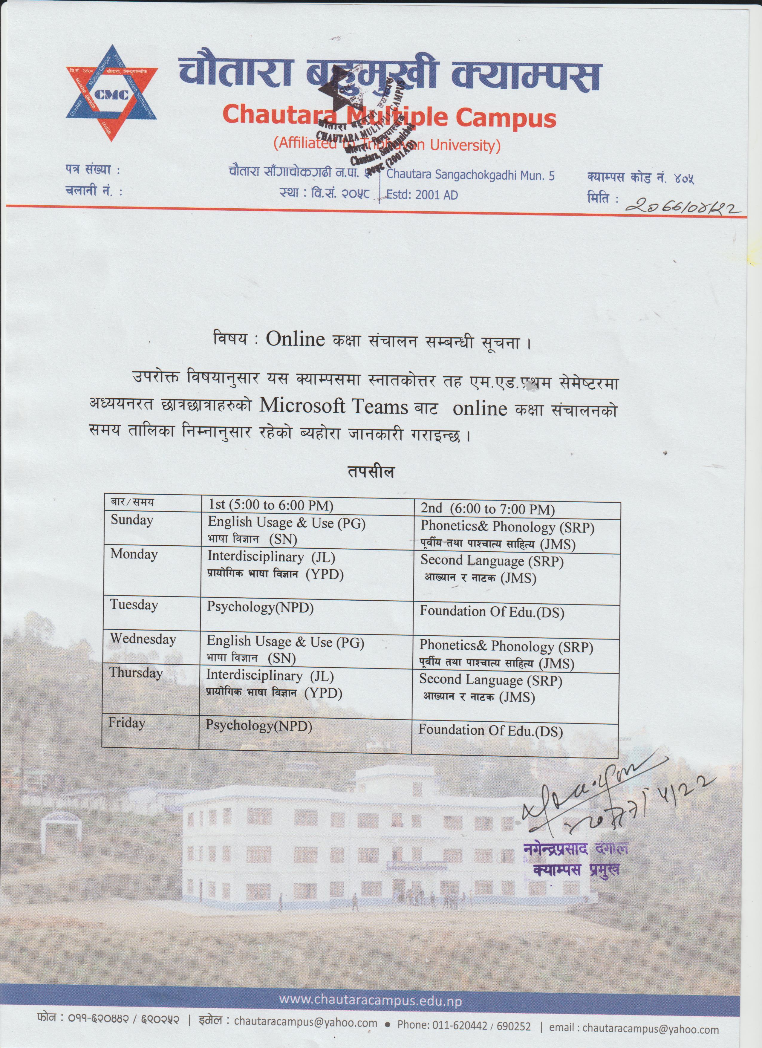 | नियमित कक्षा संचालन सम्बन्धी सूचना |